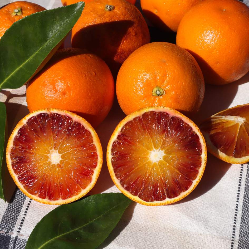 Moro Blood Oranges are renowned for their striking appearance. Blood oranges are medium in size and with a distinctive crimson interior that gets its color from the presence of anthocyanin pigments. The flavor is a perfect balance of sweet and tart, making it a culinary delight.