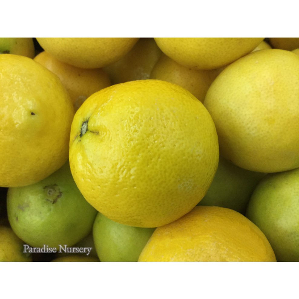 An everbearing fruit tree that is easy to grow and also a heavy producer, the Limu Shirin tree is a wonderful addition to the home garden. The tree itself is quite beautiful and produces fragrant, white flower blossoms. The fruit is medium-sized, round in shape, and has a thin, smooth, yellow skin. It has greenish pulp and an intense, sweet aroma—a floral, lime scent with a touch of pine.